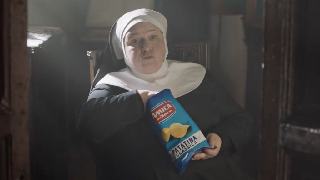 The spot by Amica Chips features doe-eyed young nuns inside a convent delighting that their communion wafer, known as the host, is actually a potato chip.