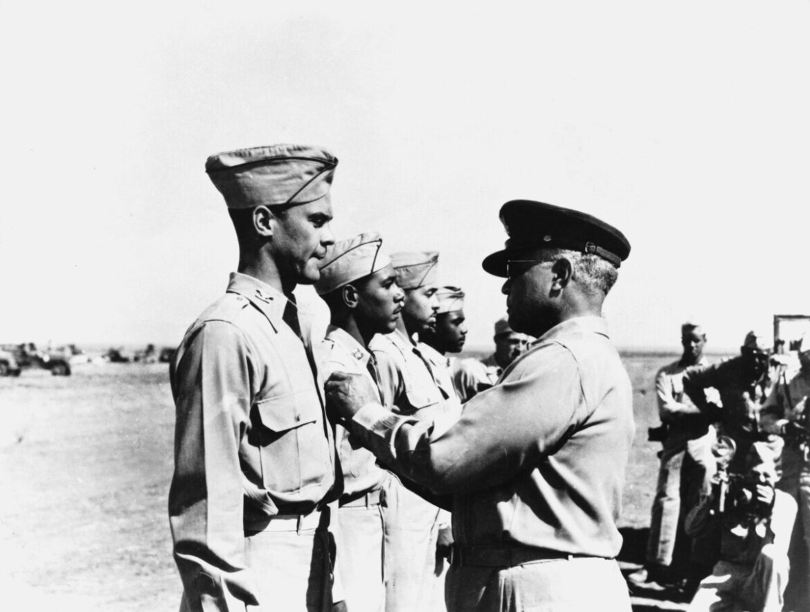 In 1942, Davis Jr. graduated in the first class of pilotsin a newly-created unit of Black military aviators at Alabama’s Tuskegee Army Airfield – a unit now known as the Tuskegee Airmen. That August, he assumed command of the 99th Fighter Squadron, the first unit of Tuskegee Airmen, which engaged in combat in North Africa and Sicily.