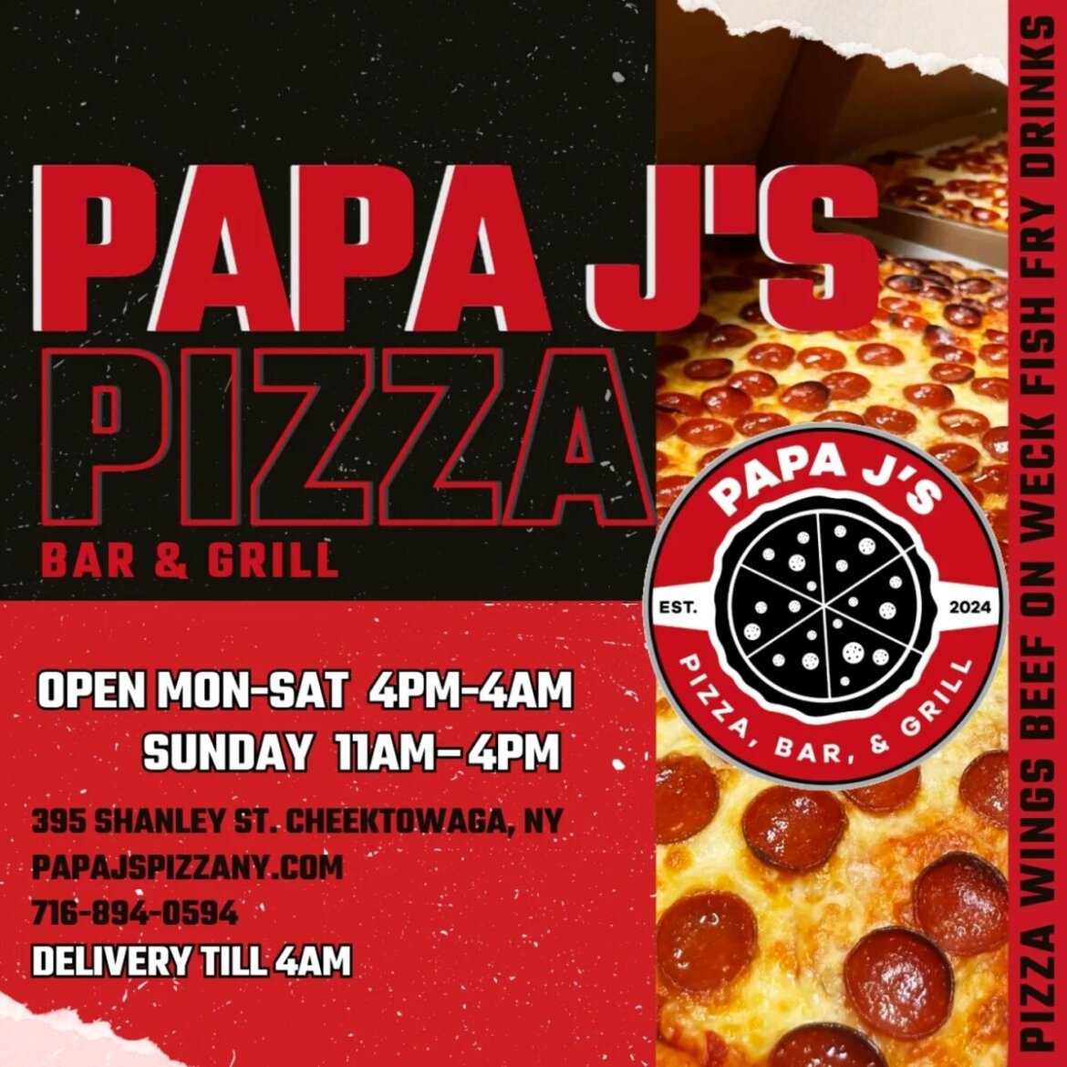 Looking for the perfect place to grab a slice, catch up with friends, or enjoy late-night eats? Look no further than Papa J’s Pizza Bar & Grill, your new favorite hangout in Cheektowaga, NY!