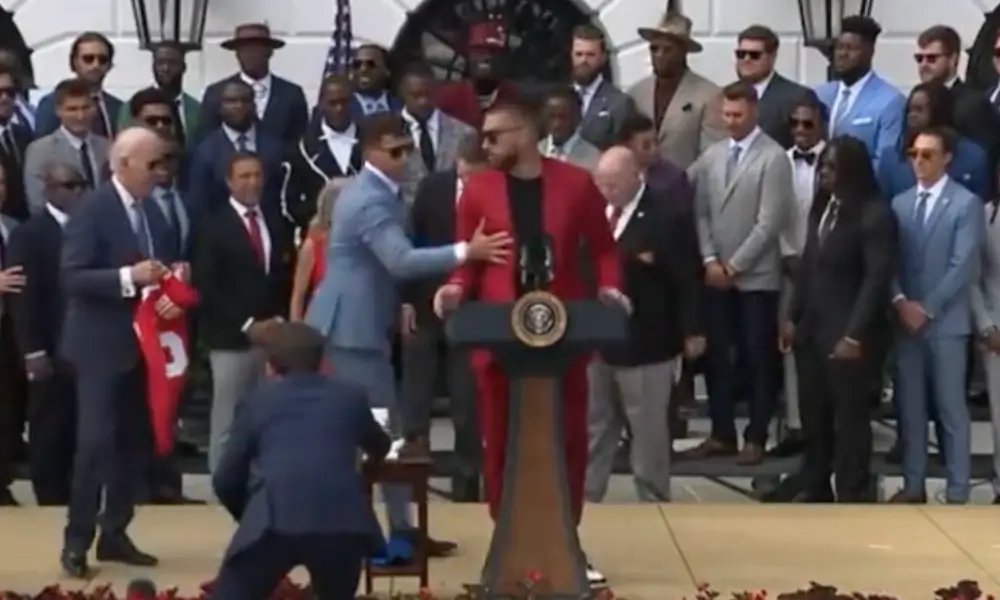 Kelce and the rest of his Kansas City team were at the White House in Washington for the traditional appearance in the US capital after a title victory – the Chiefs won Super Bowl LVII in February with victory over the Philadelphia Eagles.