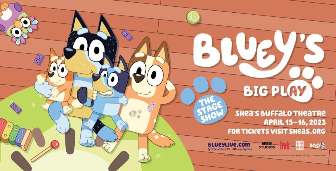 | Buffalo, NY, January 11, 2023 – Grab the sticky geckos, break out the duck cakes, and alert the grannies! It’s time to meet the much-loved Heeler family, who will be coming to Shea’s Buffalo Theatre April 15-16 with the Bluey live show, Bluey’s Big Play The Stage Show! The Emmy® Award-winning animated preschool series, which airs on Disney Junior, Disney Channel, and Disney+, will be “taking the show on the road” to Shea’s with four shows: |