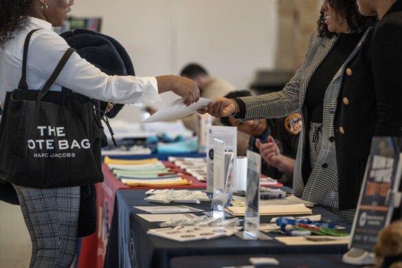 **This image is for use with this specific article only** Jobseekers attend the Civil Service Career Fair at Bronx Community College in New York on December 19, 2023.